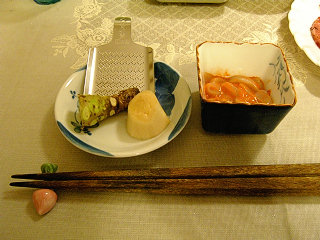 _ 激しくぱっとしない。解析結果を元に、アルゴリズムコード(C++)を起こそうとするも、どうもだめだ。乗り気がしない・・・じゃなくて、気が乗らない。 こういうときってあるんだよね。 過去の経験からすると、こういうときに無理して作業を進めても、そこそこなものは出来るかもしれないがあまりよいものは出来ない。 こんなときは、風呂入ってビール飲んで日本酒呑むとするか。 今日はマックスバリューで山葵(静岡県産)を買ってきたので、サメ吉デビューだ。 山葵のアテは、大トロ(!)の刺身と鰹のたたき。柵で買ったので、気分次第で切ってやる。 _ サメ吉デビューの図。