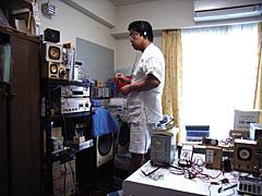 ダイソー\210(税込)ヘッドフォンでアンプ実験回路の視聴する私。
