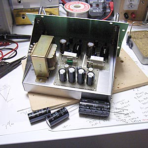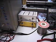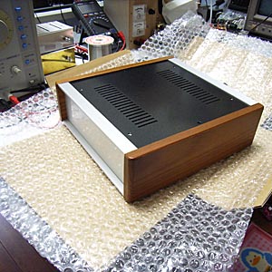 2007-02-04 ・・・・_ #003ケース格闘。すでにツッコミいただいているのですが、昨日#003用に買ったつもりのケース、やっぱヘッドフォンアンプっぽくないなぁ・・・ということで一旦は採用見送りにするつもりだったのですが、じっと見ていると、やっぱこれをヘッドフォンアンプに仕立てて、CDプレーヤーの上にこれ置いてK501繋げてヘッドフォンオーディオライフを過ごしたくなってきちゃいました。 で、実装検討を始めたのですが・・・ ユニットが全部、入らないことが判明(泣)。 写真は左右アンプユニットと電源デカップリング回路、電源トランスを無理やり載っけた図ですが、さらに平滑用のコンデンサ(手前三個)を入れねばなりません。しかもこの状態では傾斜パネルにVR付けられません(内側の部品に干渉する)。慎重に実装設計すればミリ単位のギリギリさで格納できそうですが、過去の経験上、ここまできつきつだと絶対不幸が発生します。トランスレス電源にすればなんとかなりそうなんですが、ヘッドフォンアンプだからシャーシ(ケース)は電気的にアースせざるを得ませんし、そうすると電源プラグのホット側検出回路つけておかないと、ケースの一部やヘッドフォンプラグ持っただけで感電しちゃう恐怖のアンプになっちゃいますし・・・(それも面白いかも?!) ということで、今回やはり、リードSI-3の#003採用は、泣く泣く見送りです。 このケースは#004以降用ということでここはひとつ。 つうことで早速、新しいケースの物色開始です。 電源部と入力ラインは電気的にも物理的にも切り離したいので、空間のゆとりは欲しいんですが、あまり大きすぎるのも我が部屋の設置場所の関係でよろしくないです。 う〜〜ん、難しい。