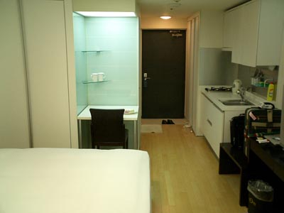 2007-03-29 突然ですが・・・_ 韓国入り。ちょいとした用事で、今日の夜の便で韓国入り。金浦空港に着いたのは22時ちょい前。 ホテルに一応IFだけは100Mの有線インターネットの口があるので、そこから更新中。なんと、いきなりグローバルIPが割り当たっていて、野ざらし状態のよう。ま、へんな防火壁があるよりは、このほうがよいかな。 今回宿泊のホテルは少し変わっていて、長期滞在型っていうのか? 部屋に全自動洗濯機やキッチンがあったり。 なんだか独身時代に住んでいた2Kの部屋を彷彿させるものがあって、なんだかいい感じ。