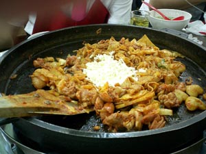 なんと! キムチが無い! 感動のあまり思わず撮影です。これで7,000ウォンですから1,000円ってとこですかね。ちょいと高めな印象かな? こんなもんかな? 味は平和でした。 某所にて仕事を終え、軽く晩飯の図です。鳥カルビという焼肉ですが結局キムチ風味です。私はキムチ好きですからここまではなんにも問題無いのですがなんと! この焼肉のど真ん中に大量のチーズが投入されます。