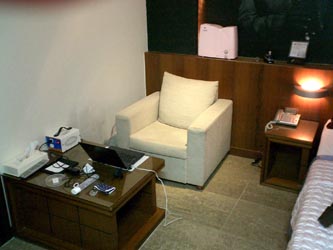 私:『ちちちちーず入れちゃうのですか?』 現:「お店の人のサービスだそうです」 いやサービスとかそういうことじゃなくて、焼肉にチーズ投入という世界観を持たない私はどっちかって言えば「それありえないだろ」と思ったわけですが、食べてみるとまろやかで大変に美味しい。 これを食べていて、ひとつ酒のつまみを思いついたのですが、キムチの上にスライスチーズをのせてオーブンで焼く。どう? 意外と美味そうかも。 今日のホテルは大変小奇麗なホテルですがいつものソウル市内のホテルに比べると少し・・・だいぶ狭いです。 でもまぁ、環境順応性の高い私ですから、清潔で安全に睡眠が取れてシャワー浴びれて、ネットワークが使えれば、どこでも大丈夫なのです。 只今25時前。さてと。これからまた一仕事です。