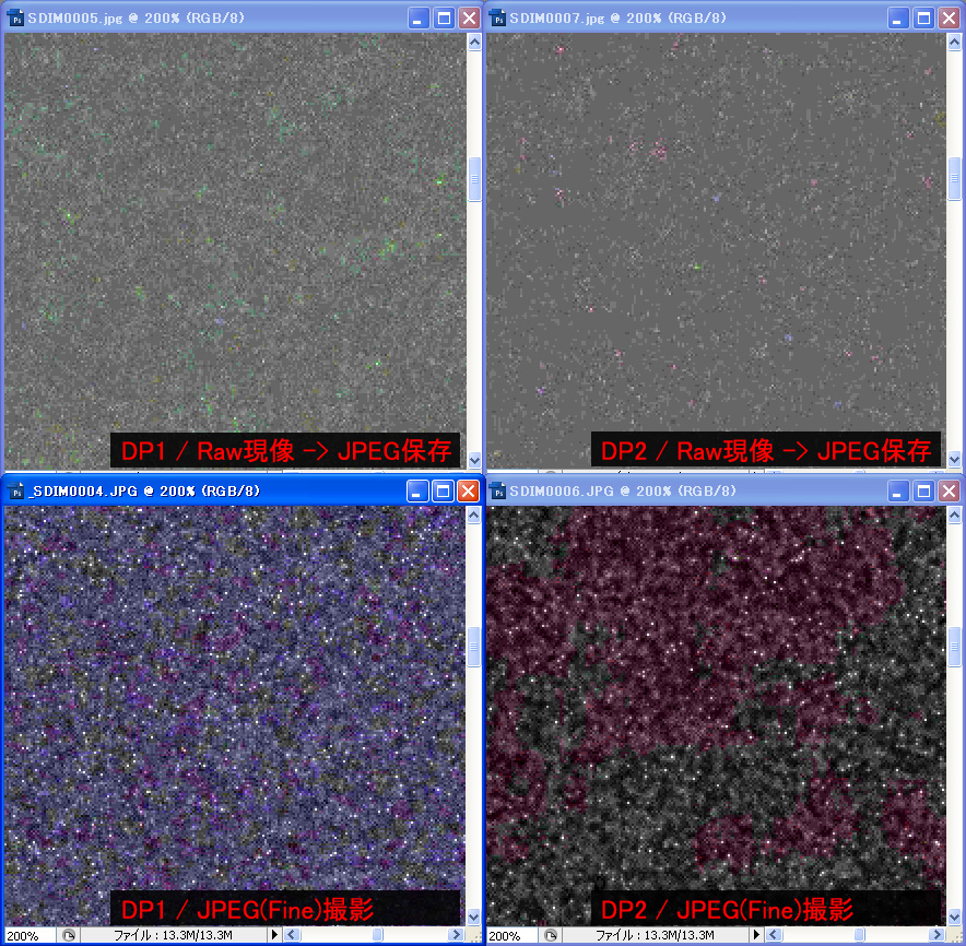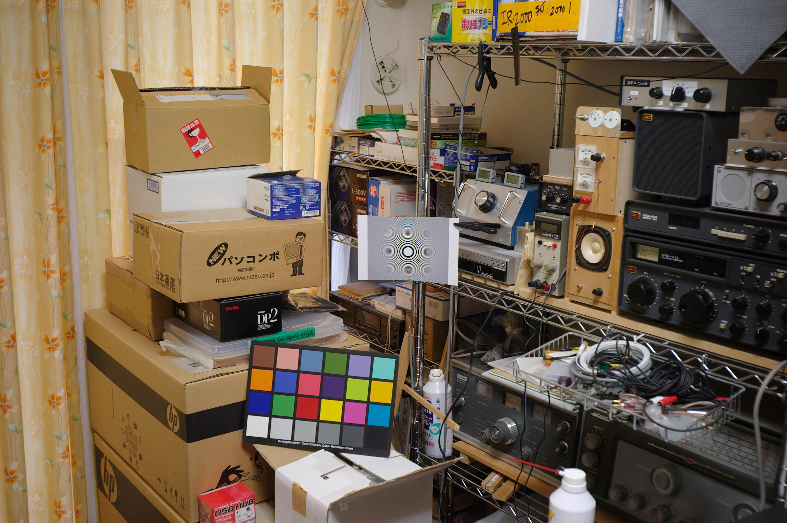 やっぱりすごいですねフォビオン。言葉でうまく表現できませんが、解像度が・・・とか、彩度が・・・とか、ノイズが・・・とか、そんな DP2のボケ具合は実にいい感じですね。う〜む、素敵かもしれない。絵作りは、DP1のほうが彩度鮮やか。さらにDP2は寒色系ですかね。室内他いろいろなシーンを撮ってみたのですが、総じて: ・DP1比でDP2のほうが寒色系。 ・DP1比でDP2のほうが画像の輝度が低め。 ・DP1比でDP2のほうが彩度低め。 まだ室内をちょろちょろ撮っただけですからこれだけでなにか結論めいたものを導き出すことはできませんが、絵作り的には、DP1→DP2で相当安全サイドに振られてしまったような印象を感じます。 彩度が落ちているあたりは、あのイモリのお腹暗黒まだら模様となにか関係あるのかなぁ・・・ 余談ですがDP1、周波数処理に少しお茶目なところがあるようです。ご興味あるかたは、上記画像をローカルに保存された上で、インチキCZPチャート付近を拡大表示して比較してみてください。 今度はraw現像で比較してみたいところです。 [ツッコミを入れる]