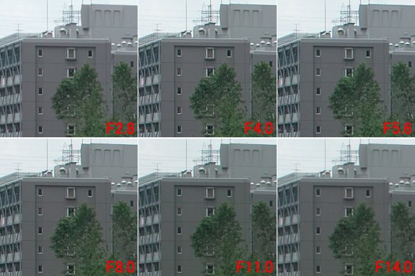上記DP2画像の、遠景描写がわかりやすそうな部分をピクセル等倍で切り出してみました。 ということは、DP2で『びしっ』とした描写を得たいときは、F5.6プラマイ1段の範囲で使うとよいということです。 それにしてもDP2の画像、何度見てもすさまじい解像感です。すごいレンズですね。また、そのレンズの解像をきちんと信号変換しているフォビオンセンサーも、さすがとしかいいようがありません。 でも色合いとかそのへんの処理(画作り)は、まだまだまだまだ向上の余地大ありです。