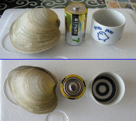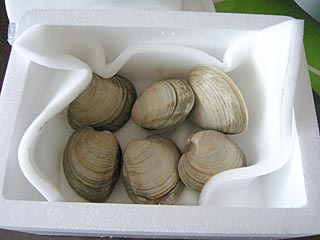 2Mピクセルの超コンパクトな まぁそんなことはおいといて、早速付属の単四ニッカドをフル充電して電源入れてみました。日付を合わせてっと・・・あれ? 真っ暗だ。 『ぉおお、これは、あの、例の、あれではないかぁ・・・』 そう、ソニーセンサーで起きたCCD結線外れ不良です。これは確かリコール対象だったハズ・・・Webで確認するのも面倒なので、ソニーサポセンフリーダイヤル(ここには何度も電話しているので番号暗記している ^^))へ電話。 かくかくしかじか・・・と話すこと数分。無料で引取修理となりました。 復活してくれたらまたしばらく、使おうっと。 _ 巨大ハマグリ・・・では無くホンビノス貝。ことの起こりは蛤が食べたくなってですね、近所のスーパーを探してみたのですが蛤というのは名ばかりの大きさとしか思えない中国産の蛤しか売ってなくって、『そうだ通販を探してみよう』と思ったことなのです。 確かにね、国産の蛤は結構高価ですし、しかもそれほど売れるとも思えない生モノなのでスーパーマーケットでは仕入れにくいだろうという事情も理解はできます。 で、インターネットであちこち調べてみたらば、ホンビノス貝 なるものを発見。アメリカから船舶のバラスト水と一緒にやってきて、東京湾にいついた巨大二枚貝で、なかなか美味とあるではありませんか。 値段もリーズナブルで、1kg(5〜7個ぐらい?)で2000円弱。国産蛤だと通販でも1kgで安くても5000円以上することを考えると一度は試してみてもよさそうです。