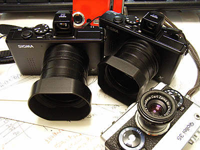 DP2 : ISO100, F5.6, 1/2.5 秒 R-D1: ISO200, F5.6, 1/9 秒(現像ソフトで露出補正 +0.7EV) です。三脚に据え付けて、ほぼ同じ位置からの撮影です。どちらもRawで撮って純正ソフトで現像しました。 どうですかね? って、まぁ、どうですかねって言われてもねぇ・・・ みたいな感じですかね。 一見してDP2の圧倒的な解像感と立体描写におののきますが、R-D1の画像、ベイヤー補間の影響なのか、レンズとセンサーの相性問題なのか、その両方なのか、これだけでは切り分けが出来ないので単純に DP2の勝ち! とは言ってしまえない複雑な事情があります。 唯一言えることは、R-D1で発生しているインチキCZPチャートのところの偽色は、DP2では発生していないということです。これはレンズのせいでは、ありません。 しかしあれですね、DP2のレンズ、かなり気合い入ってますね。カメラ価格の半分以上、ひょっとしてレンズ代? おいおいいろいろやっていきたいと思います。 本日のツッコミ(全4件) [ツッコミを入れる]