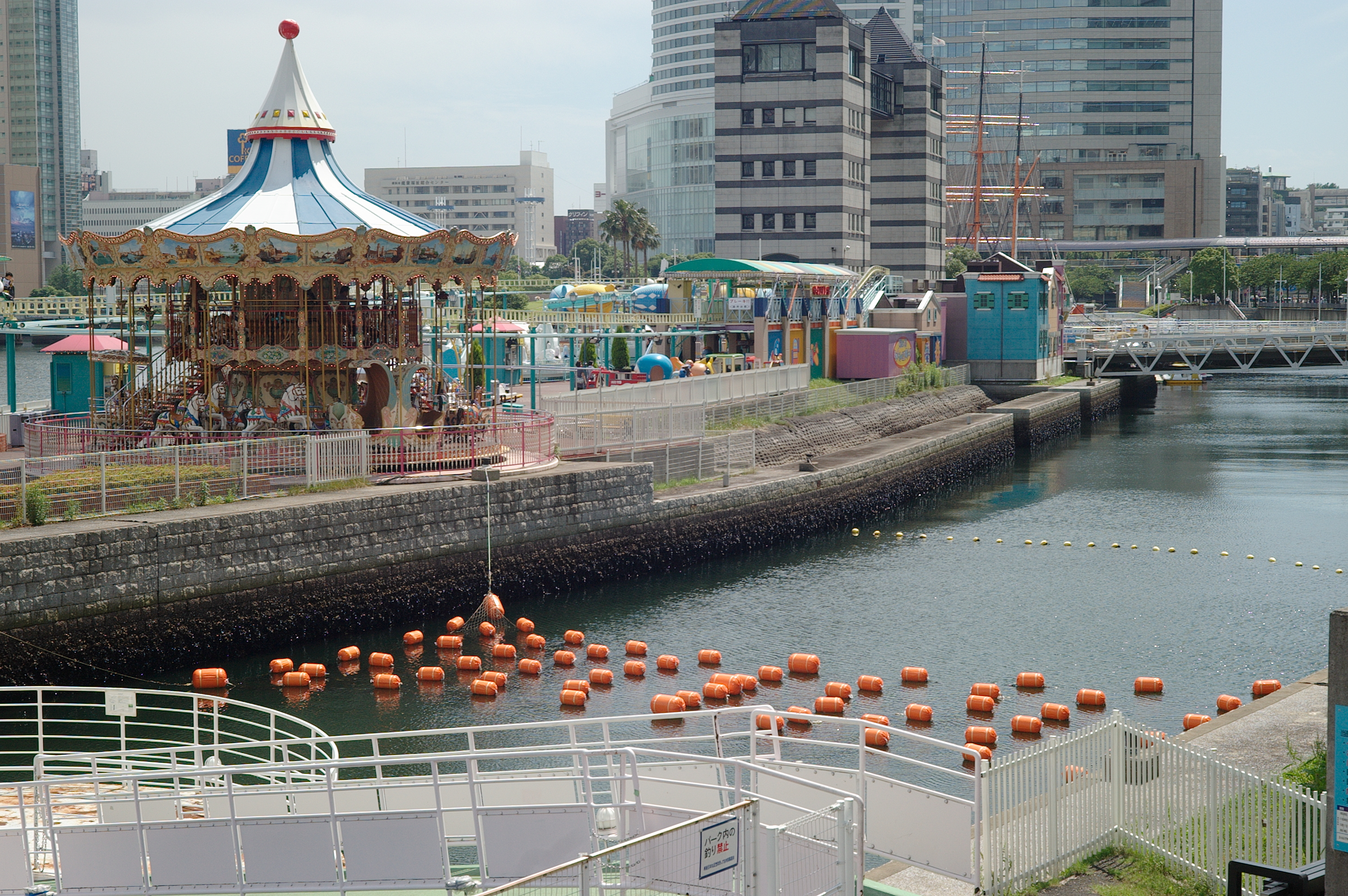 2009-06-13 梅雨入り直後にもう中休み?!_ シグマDP2 vs エプソンR-D1 vs エプソンL-500V 横浜桜木町周辺で比較撮影。今週は実にバタバタしていて本当にあっという間に週末って感じです。 昨、6月12日(金)に、毎年恒例 画像センシング展@パシフィコ横浜 に行って来ました。かにこむ のクライアントさまのブースにご挨拶しつつ、一通りざっと見てきました。例年に比べてなんとなく、来場者少なめかな? って感じですかね。 せっかく桜木町まで来ましたので、ついでにDP2、R-D1 + Mロッコール40mm/F2、L-500Vの3機種を使って比較撮影してきましたので、以下に掲載したいと思います。 いや〜、暑かったです。日焼けして首の後ろがひりひりしてますぜ。 今回、実はR-D1のRaw現像について、大変悩みました。悩んだのはシャープネスの設定なんですが、すなわち理由はこうです。DP2の現像ソフト「SIGMA Photo Pro 3」は、シャープネスをゼロに設定した場合これはおそらく、シグマが考える「最適な」シャープネスデフォルト強度が適用されているんですね(あくまで青木推測です)。それに対してエプソンの「EPSON Photolier」は、R-D1のRaw現像においてシャープネスをゼロにすると、本当に一切のシャープネスがオフになって、なんにもかからない画像を生成してくるようなんです。 この両者を単に設定「ゼロ」同士で比較してもあんまし意味ないな〜って、思いません? よって今回は、R-D1側は、私の主観で見た目自然な解像感を維持する範囲内で、現像ソフトのシャープネスを設定することにしました。とはいえほんのちょびっとですけどね。 DP2の画像は、むしろぼかしたくなるぐらい滅茶苦茶解像していますから・・・ 屋外撮影なので、画角についての考慮は全くされてません。すなわち、135フィルム換算で言えば、L-500Vが35mm相当、DP2が41mm相当、R-D1+Mロッコール40mm/F2が60mm相当。L-500Vが最も不利な状況であるという点を踏まえ、画像を見てくださいね。 あ、あと、L-500Vは大変にくたびれてます。1.5mぐらいの高さからコンクリ路面へ落としちゃったりとかしてますので、その点ご留意ください。