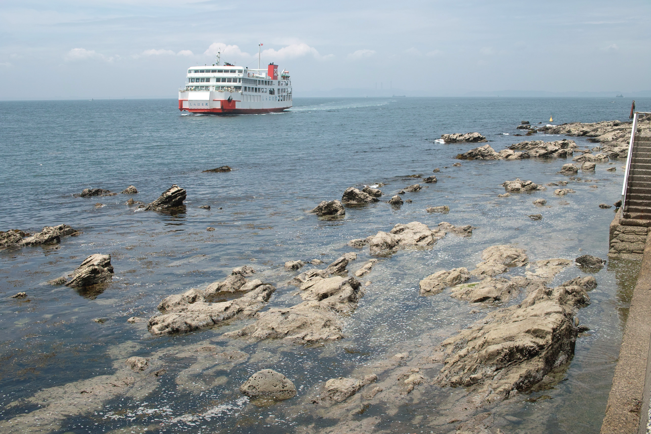 2009-06-20 シグマDP2を持ってプチ旅。_ 久里浜-金谷の東京湾フェリーに乗ってみた。なんの理由もなく・・・いえ、しいてあげれば「乗ったことないので乗ってみたい」「金谷って行ってみたことないので行ってみたい」というだけぐらいの理由で本日、久里浜-金谷間を往復している東京湾フェリーに乗ってきました。 気ままな一人散歩なので、東急&京急&徒歩を駆使しての日帰りプチ旅。 いや〜、14kmも歩いてしまいました。 とっても疲れたので、詳細はまた後日まとめます。今日はもう、晩酌でゴキゲンになっちゃったので、また明日〜! しかしDP2は楽しいです。最近、京急大師線撮影に行ったり、桜木町でテスト撮影したり、今日もなんの必然性もなく、思うがままに金谷まで行ってみたり・・・してますが、こんなことしようと思うのも、DP2を持って外に出たいなぁ・・・って、思うからなんですね。 「写真」を撮ることの楽しさを、感じることのできるカメラです。DP2は。 _ 日焼け跡がヒリヒリ痛い(2009年6月21日 16時10分追記)。上で書きました昨6/20の金谷行きですが、朝は曇りだったものの、金谷ではときたま日が差すような薄曇り。こんなぐらいならそれほど日焼けしないだろう・・・と、甘く見ていたのがいけなかった。真夏の快晴の日、海で焼けたぐらい日焼けしてしまいましたよ。 夏至のころの紫外線パワーをなめてかかっては、いけませんですね。 金谷港からJR内房線の浜金谷駅まで歩いて、そのあと竹丘駅まで往復歩いてみたのですが、おそらくこの歩行時に焼けたのでしょう。ちょうど正午をはさむ時間帯に、延々歩いていましたので。 昼食は竹丘駅近くに見つけた「磯料理マルゴ」という食事処で、鯵のたたきと天丼を食べました。いやもう激ウマ!