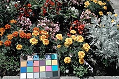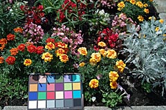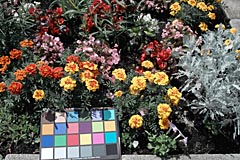 ■撮影データ _ SIGMA DP2の屋外ISO別サンプル画像(花壇)。ISO50からISO3200まで順番に並んでます。ISO1600以上はND8で減光してます。 ISO50とISO100の画像を見比べていて 『!』 となりました。みなさんもぜひリンク先のオリジナルをローカルに保存して、画像表示可能なソフトで比較してみてください。 なんとISO50では、黄色が飽和してある日突然真っ白になっています。黄色は本来、青成分が少なく、赤と緑で構成されるべき色ですがISO50では、高輝度域にある黄色は青が突然レベルアップしてしまい、結果、白くなってしまってます。