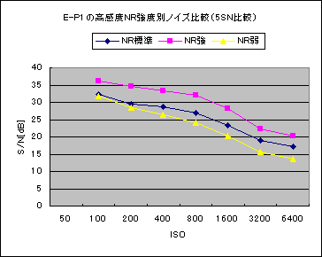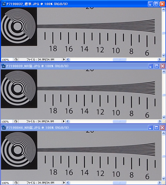 これが、E-P1のISO100、高感度NR標準と強、弱の画像比較です。