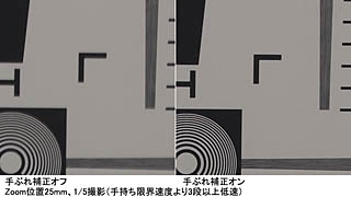 2009-08-01 またも実験・・・_ オリンパスE-P1の手ぶれ補正の効果を実験してみた。E-P1って実に不思議なカメラで、誤解を恐れずストレートに言うと、写真を撮るよりいじっていると面白いカメラなんです。あ、あくまで私にとって・・・さらに、今のところ・・・ですよ。いじっているとあれこれ面白い。だから、こうして部屋の中でチャートばかり撮ったりしているようなんです。マウントアダプタ使って全然アンバランスなレンズを付けて遊んでみたり、『へぇ〜』とか言いながらそれで空シャッター切ってみたり。 それに対してシグマDP2は全く真逆なカメラです。部屋でカメラ本体だけいじっていても全然つまらないですしそんな気も起きない。DP2を手にすると、『写真撮りに出かけるか』って気持ちがどんどん沸いてきます。DP2は、とにかく写真を撮ることが本当に楽しくなるカメラです。久里浜からフェリーに乗って金谷まで行ってみたり、桜木町にテスト撮影に出かけてみたり、京急大師線をスナップしに行ってみたりなんて気になったのも、DP2のおかげです。 とはいえせっかく買ったE-P1ですから、少しは外に出て写真撮ってみないことにはとは思っているのですが・・・ そんなわけで今日は、E-P1の手ぶれ補正の効果を実験してみましたのでご紹介します。 _ はじめに手ぶれ補正の性質とその注意点。実は私は、手ぶれ補正機能を持ったカメラって、銀塩デジタル含めてE-P1が初めてです。正直全く興味のない機能ですし、また、欲しいと思ったカメラにはどれにも付いてなかったってこともあって今まで出会ったことが無かったのですが、E-P1にはセンサーシフト式の手ぶれ補正機能が付いています。 取扱説明書を読みますとさりげなく書いてあるのですが、「三脚に固定して撮影するときには、手ぶれ補正機能をオフにしてください」という文言があります。 これ、実に重要なポイントなんですよ。 ちょっと考えると「三脚に固定しておけばブレないわけだから、まぁ、手ぶれ補正オンでもオフでも関係なくね?」 となるわけですがそれが大間違い。これ、私もつい最近知ったばかりなのですが、結論から言うと『三脚に固定した状態で手ぶれ補正をオンにすると、画像がブレる』んです。ですから、三脚に固定して撮影する際には、手ぶれ補正は必ずオフにしなければならないのです。 以下、私の推測なのですが、きっと手ぶれ補正ってぶれることを前提に機能しているんですね。『ぶれていない』ことを検出できないのです。よって、三脚に固定した状態でこれをオンにしてしまうと、補正系(E-P1の場合はセンサー移動系)の目標位置を維持しようとして常にサーボがかかり、行ったり来たりを繰り返してしまうのではないかと。 左がその実験画像です(別窓で開きます)。三脚に固定して手ぶれ補正をオンにして撮影すると、明らかにぶれているのが確認できます。 これを踏まえて、手ぶれ補正の実験をしてみましょう。 _ 手持ち限界から3段以上スローで効果あり。解像力チャートの手前80cmぐらいのところに普通に立って、部屋の照明を全部落として薄暗くして、撮影します。3枚撮ってBestな駒をチョイスしてみました。 結論から言いますと、一般的に言われる手持ち撮影限界速度(= 1/(135フィルム換算焦点距離) )より3段以上スローなシーンでは手ぶれ補正の効果がありましたが、2.5段程度であれば、『心頭滅却して全神経をシャッターレリーズに集中する』 ほうが、クリアな画が撮れそうです。もっともこれは私の場合であり、各人の力量に大きく左右されるところであります。 Zoom位置25mmで1/5秒です。この焦点距離ですと手持ち限界は1/50。3段と1/3ぐらいスローです。この領域になるとさすがに手持ちだとぶれますね。まだまだ修行が足りません。手ぶれ補正の効果大です。 Zoom位置14mmで1/5秒です。この焦点距離ですと手持ち限界は1/30。2.5段ぐらいスローです。このぐらいであれば手持ちでもなんとかいけそう。少なくとも補正あり/無しでの差は確認できません。 昔の人間なためか、なんか気持ち悪いんですよねこういう補正機能。不安定な姿勢でスロー切らねばならないようなときには緊急回避的に有用な機能だと思いますが、私の場合、2段までは手ぶれ補正オフのほうがよさそうな感じです。 今回はたんに立った場合で撮影しましたが、壁に寄りかかるとか、肘をどこかに付けるなどすれば当然あと1段以上は稼げそうですしね。 私はデジカメでは動画を撮らない人間なのですが、動画の場合は話がまるで異なります。動画を撮るときには手ぶれ補正必須ですね。画の安定感がまるで違います。駒間のつながりっていうんですかね。 動画はシャープのDVCでたまに撮りますが、そちらは年中手ぶれ補正オンで撮ってます。 [ツッコミを入れる]