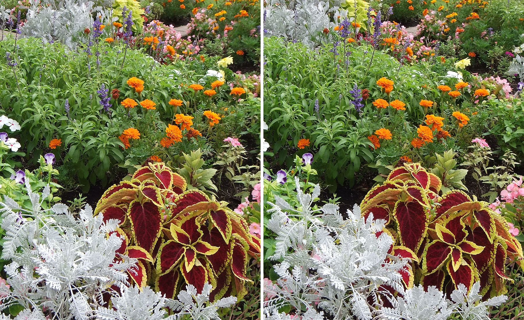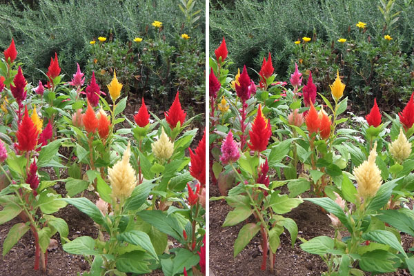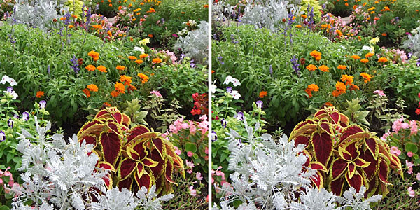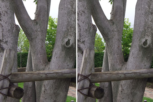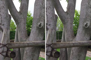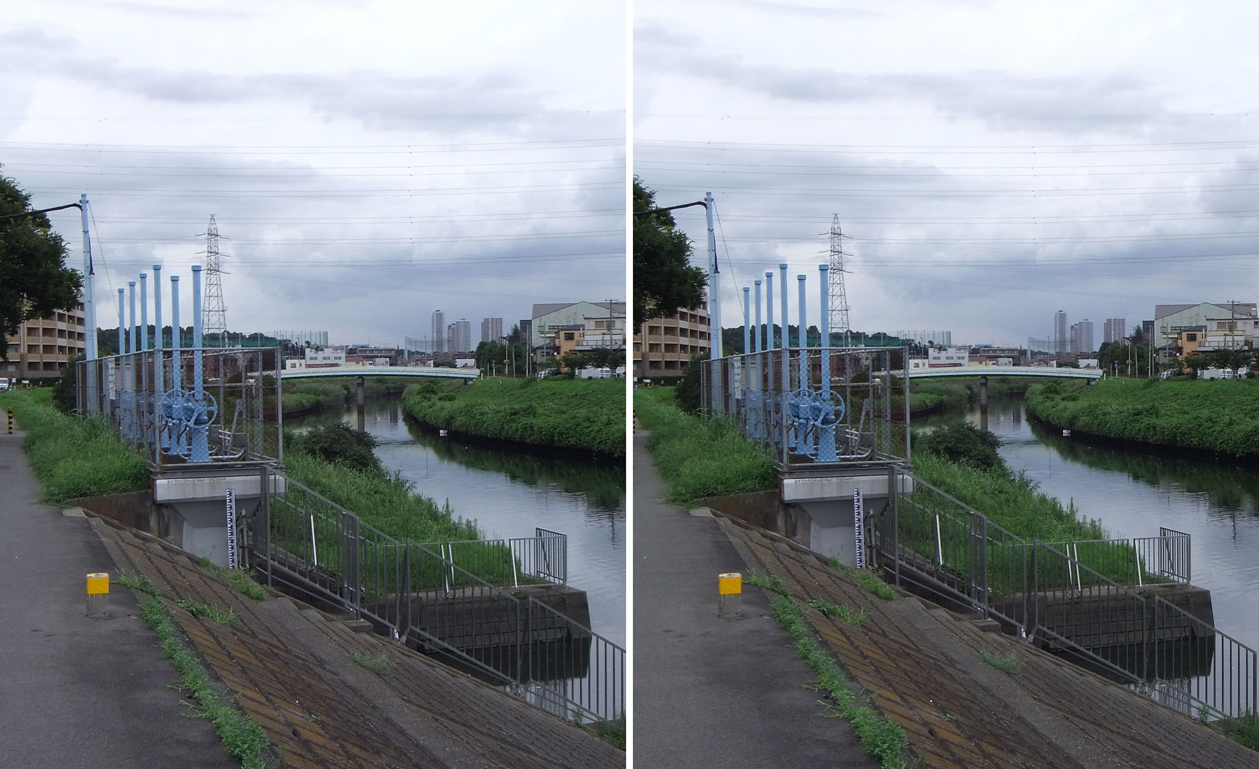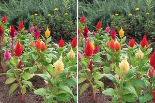 残念ながらPCの液晶モニタでは、当然ですが上記のような液晶表示システムはありませんから、3D画像をお伝えしようと思ったら従来通りの平行法、もしくは交差法などの裸眼立体視に頼るしかありません(赤青メガネの方法もあるにはありますが・・・)。裸眼立体視できる人はよいのですが、できない人は大変申し訳ないのですが、訓練してできるようになってもらう他ないのが実情です。ぜひ、こちらの裸眼立体視入門をご覧いただき、立体視の面白い世界を体験いただければと思います。 近々、赤青メガネの方法も、試してみようかとは、思っております。 というわけで入手2日目ですが、FinePix REAL 3D W1で撮影した作例いくつかご紹介したいと思います。使ってみて感じたのはこのカメラ、ステレオベース(2個のレンズの間隔)がかなり広めで、近距離の被写体だと視差がつきすぎてかなりドぎつい立体視映像が出来てしまいます。今まで普通に裸眼立体視出来ていた私でも、なかなか見えなくて少し焦りました。実はこれ、見えてないのではなく見えているのですが、視差がありすぎて脳内合成でエラーが起きているんですね。もっともきっとこのシステム側は、裸眼立体視されることなどまるで考えてなく、あの謎の液晶モニタでの表示に最適化された状態での撮影だと思いますのでこれについては仕方ない面も多々あります。事実、カメラの液晶モニタで見る限りでは、かなりリアルに立体に見えますから。 その点踏まえてご覧ください。リンク先は全て別窓で開くはずです。