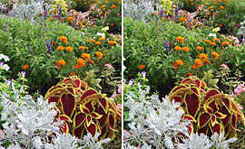 こんな感じですが、総じてすごく面白いです。実に楽しい。 早速作例を上げたいところですが、このデジカメ、(当然ですが)この特殊液晶で鑑賞することしか考えてないせいか、付属のFinePixViewerでステレオペアのJPEG画像を生成できるものの、横長画像をさらに横に並べて裸眼立体視するのは結構つらいものがあり、裸眼立体視で綺麗に見える作例を撮影するには少しコツが必要なようです。 もう少しお時間ください。数日以内に、おもしろそうな作例を用意したいと思います。 こちらに 「裸眼立体視入門」 というコンテンツを用意しました。裸眼立体視が出来る人にはまるで無用なコンテンツですが、「裸眼立体視なにそれ?」 「裸眼立体視できないんだよね〜」 というみなさま、今後 かにの泡ぶく で掲載されるであろうステレオペアを楽しむためにも、ぜひご覧ください。