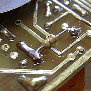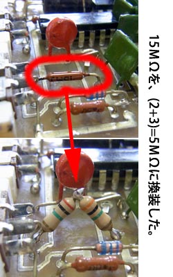 390Kオームを取り外すのがめんどいので、基板の裏にパラで470Kオームを繋いでみました。