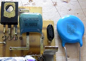 このコンデンサ、回路図上では0.015μFとありますが、実装上は0.01μFになっているようです。ちょうど手持ちに、0.01μFで2kVという円盤コンデンサがありましたので、これに換装してみます。 すると・・・ 今までの不調がウソのように解消し、非常に軽快にガンマ線をピッピピッピカウントしはじめました。除湿が止まってじめじめ度MAXになっても全然快調です。