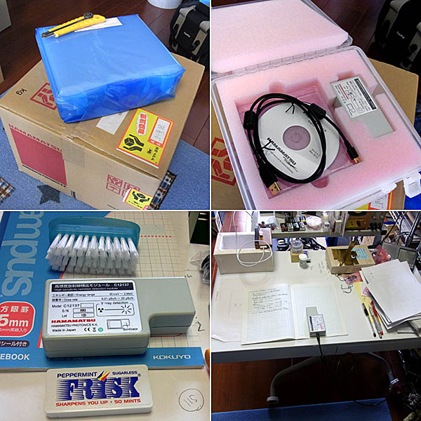 _ 浜ホト高精度放射線検出モジュール「C12137」納品される。(24時16分記)本当は連休前に納品されるハズだったのですが、注文殺到しているのか、昨日旅行から帰宅後、納品されました。 2011年10月からサンプル出荷が開始され、2011年12月から製品出荷が予定されていた本製品。以前から興味があったのですが、自作線量計のリファレンスとするべく今回購入を決意。『10万円だったら買い。50万円以上なら見送りだな〜』なんて思いつつ見積取ったらなんと! サントリー角瓶約250本分、立ち食い天麩羅蕎麦約795杯分相当の消費税込で \262,500- という実に絶妙で微妙な金額。 『想定レンジのきっちり半分で来やがったか・・・』なぞとつぶやきつつじっと手を見る・・・ でもね、やっぱ仮にも自作でまともな線量計作ろうと思ったら、リファレンスが要るわけです。 もうね、即座に買い決定しました。仕方ないです。ここは買うしかないのです。 今、自室の空間線量のスペクトル取ってます。 あとはもう、こいつを骨までしゃぶりつくすべく使い倒すのみです。