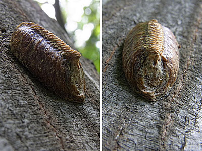 というわけで午前中はまだ日差しも良好。朝ごはん抜きで少々空腹ではありましたが、そのままいつもの散歩に出撃しました。 いつものお散歩雑木林で、比較的新しい感じのハラビロカマキリの卵のう発見。家でじっくり写真鑑定するために、超どあっぷで写してみたのだけれども、等倍で観察しても孵化した痕跡はなさそう。 今シーズン産卵分の卵のうかな? 来春が楽しみ。
