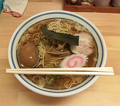 2012-11-02 秋晴れ続く。_ 今日のお昼ご飯。(14時18分記)地元で地味にブレイクしている もりの中華そば に、はじめて入ってみました。 何度か前を通ってみたことあるのですが、お昼前後はいつもすんごく混んでいて入れなかったのです。まぁ、並べば入れるのですが、私はよほどのことが無い限り、並んでまで外で食事をすることはありません。 今日、午後1時半ごろ行ってみると数席空きがあったので、やっと入ることができました。 メニューは、基本ラインが2本あって、一つは中華そば。もう一つは、つけめん。あとは、トッピングでバリエーションがいくつかあり、プラス、大盛という構成です。 頼んだものは、味玉そばの大盛。 見た感じとは裏腹の意表を突く味。中華そばというので醤油味かと思ったら、しっかりダシが効いたとろみ系のスープです。 太麺とのマッチングはかなりいい感じで、美味かったです。食べた感じだと、スープ全部飲んで 780 KCal ぐらいな感じかな。 こりゃ混むのも納得。