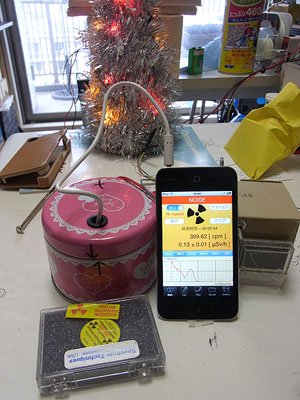 facebookの集まりである ポケガ工作部 有志で出展します(出展者情報 Maker Faire Tokyo 2012)。 私の出展物は、以下で紹介する電子工作物「モニタリングツリー(仮称)」「狂改造ポケットガイガー」の2点です。 両日とも午後は会場入りしている予定です。たぶん、午前中も居るんじゃないかと思いますが、午前中は不定です。 みなさんぜひ、お立ち寄りください。 _ 最近の電子工作ネタ二点。(17時05分記)すっかり寒くなってきて、静電気が怖い季節になりました。電子工作で、MOS系のデバイスをいじるときには重々注意しつつ身体を放電しながら慎重に扱っている今日この頃ですがみなさんお元気でしょうか? さて、今日は、久しぶりにyoutubeに投稿した動画のご紹介です。 時節柄ってこともあって、クリスマスツリーを作ってみました。ガンマ線を受けて光るクリスマスツリー、名付けて「モニタリングツリー」です。 はじめは、ガイガーツリーにしようかと思ったのですが、検出器がシンチレーターなのでガイガーはボツ。ラディエーションツリーもいいかなって思ったのですが、実はここはまだ迷ってます ^^) 取り合えずは、「モニタリングツリー」で行きます。 10x10x10mmのCsI + S6775を使って自作した検出器に、自作チャージアンプと自作AFアンプ+ピークホールドで、137CsのパルスをTTLレベルにまで増幅します。これを、PIC(12F675)に入れて、ADしてエネルギー分解し、光らせるLEDの色を制御しています。