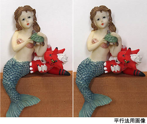 3人に分離したらしめたもの。その真ん中に人魚に気持ちを集中させて、ピントを合わせる点は交差法と同じです。
