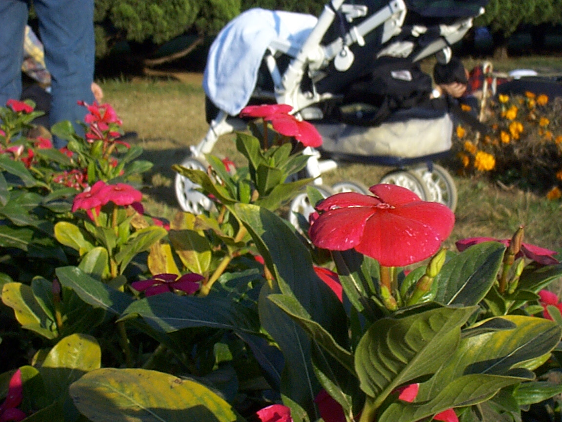 マクロモードで花壇のお花を撮影。DC210とDS-20は背景がボケたマクロっぽい作図が可能。DC-2Eはもっともっと寄れる(なんてったって1cmまで)んだけども、他との比較の関係で、同じぐらいの距離で撮影。ごめんね。