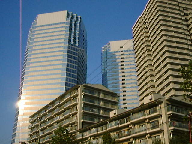 これは相当意地悪なテスト。午後3時すぎの撮影で、ビルの窓に太陽光が思いきり反射している状況。スミアのテストも兼ねて。