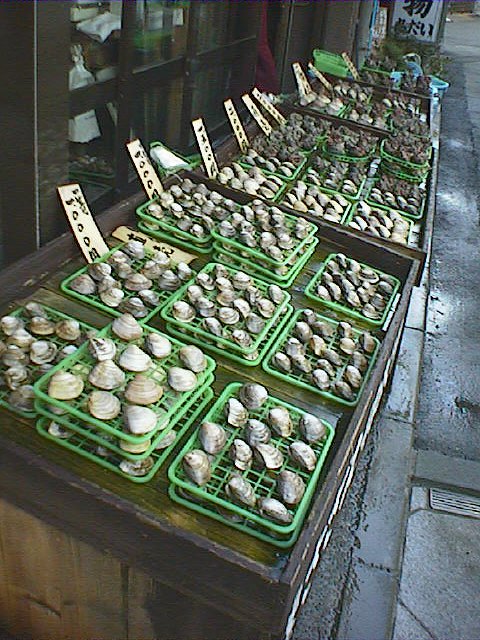 さざえ、はまぐり、魚などなど・・・・とにかく豊富。いろいろなものを売っている。値段は・・・・・・・??? 私は大学のころはよく江ノ島に遊びに来ていたが、以前に比べると随分高くなったかな? ちなみに、大学のころとは12年ぐらい前である。