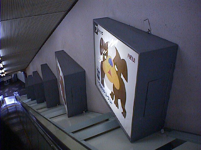 来る途中、青銅の鳥居からまもなくの間はずいぶん近代的にこ綺麗になってしまったが、エスカーの中は部分的にタイムスリップ可能だ。なんとも懐かしいお菓子の広告達・・・