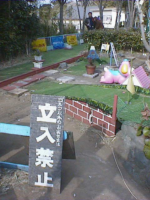 立入禁止のむこうは、ミニミニパターゴルフ場だ。こういうテーマパークは大切にしたい。