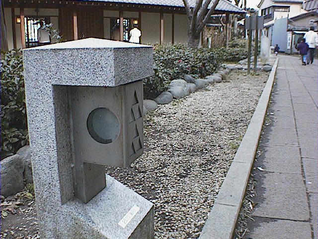 『二つ山』のマークは江ノ島内至る所で目にする。おしゃれな常夜灯である。