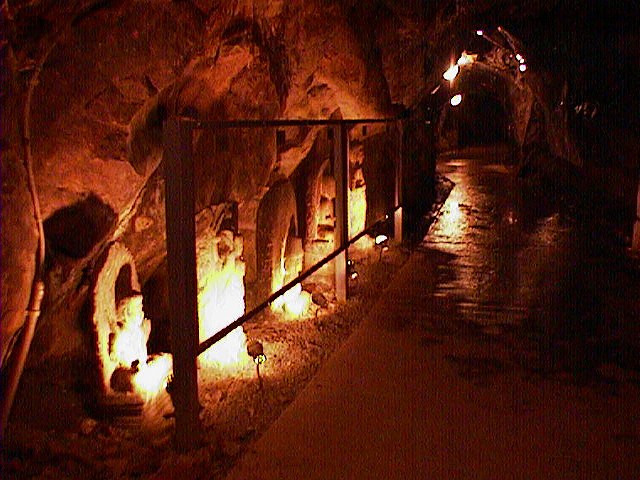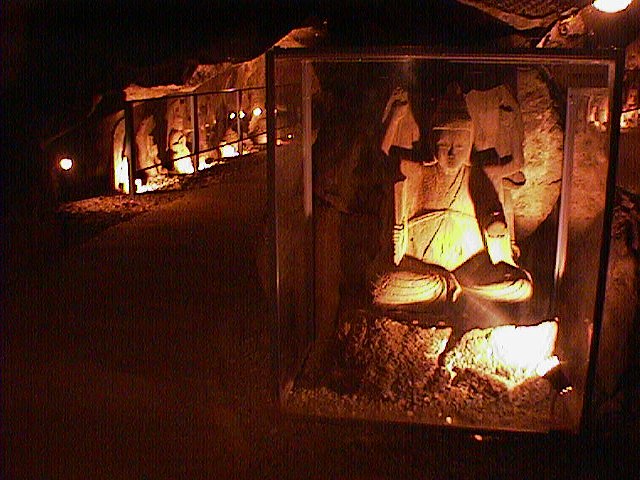 岩屋の洞窟。波、地下水などによる自然の浸食でできた洞窟のなかは、神秘的でかつ幻想的な演出がされている。