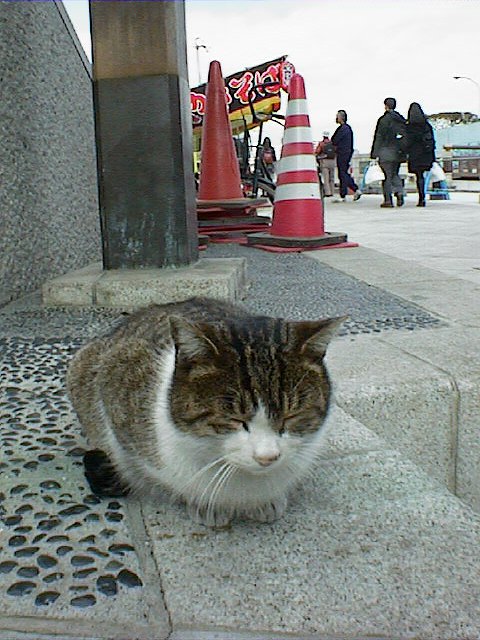 江ノ島は猫が多い。魚が豊富なので、各地からやってくるのだろうか。この猫は、寝ているのか起きているのかよくわからなかった。頭を『つんつん』しても反応なし。