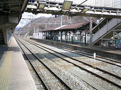 屋代駅着。向こうに随分古いホームがあるなぁ・・・と思って写真を撮る。