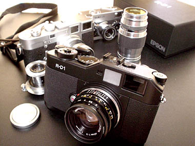 私としては、ここ数年来、ようやく久しぶりに「これだぁっ」って感じで、躊躇無く、なんのためらいもなくお金を払って、所有したいと思えるデジカメが出てきてくれたかって感じの気分なのであります。その痛快度から言うと、1996年に衝動買ったリコーDC-1S以来と言ってもいい。『この製品は、俺はなんとしても買わねばならないんだ』という選択の余地のない衝動です。 そこで、このデジカメ史にその名を残すであろうR-D1に関する四方山話を、まぁここで記録として残していこうという趣旨であります。 小難しい話も出てくるかもしれませんが、純粋に写真を楽しむことを目的として買ったR-D1の頁です。ぜひ、肩の力を抜いてご覧ください。 |
