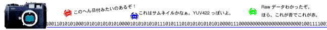 R-D1を注文したその日のうちに、いちおう、だめもとでエプソンさんにR-D1のRaw画像形式を開示してくれるか、問い合わせてみた。 が、結果は、予想していた通りNG。私はいちおう、(本業で)いろんな画像システムを開発することがある関係上、エプソンさんのデベロッパプログラムのメンバーになっているのであるが、それでも非開示ってことなので、よっぽどのことがない限り開示はしてくれないみたいだ(*1)。 仕方がないから自力で解析だ。 まぁよい。なんせ相手はCCD-Rawデータだ。私は自分で言うのもおこがましいが、センサーの信号を扱うことにおいては、ちょっとだけ自信はある(*2)。真っ白な被写体を写した画像と、レンズキャップ閉めたまま最速シャッターで切った画像、赤全面を写した画像、青全面を写した画像の4枚があれば、バイナリエディタで中身をみればすぐにわかるだろう。シャープなレンズできっちり撮れば、マクベス1枚でもわかりそうなもんだが、幸い、テスト撮影だけならいくらでもできる環境なので、解析負荷を下げるべく、解析を容易にするための材料として、上記4枚の画像を用意した。 つうわけで、小一時間で解析完了。 なんでこんなことするのかって? それはあ〜た、R-D1を骨の髄までしゃぶるために、自分で現像ソフトを作るためですってばさ。 いつになるかわからんが、MacOS X 専用の、現像ソフトを作りたい。私は写真はモノクロ志向なので、とことんモノクロにこだわった現像ソフトを作りたい。もちろんカラーもサポートするよ。 お楽しみに。 |